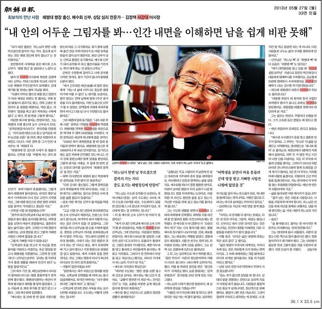 김정택(71 철학) 모교 이사장 신부의 인터뷰가 조선일보에 실렸습니다. 김 이사장은 인터뷰를 통해 신학교에 재학하다 해병대로 입대한 사연, 예수회에 입회한 이유, 그리고 심리학자로서의 가치관 등을 밝혔습니다. 또한 "삶을 돌아 보면 결국 남는 것은 사람과 사랑"이라며 "남을 위해 헌신하는 삶, 이웃 사랑이 하느님의 가치다"라고 강조했습니다.