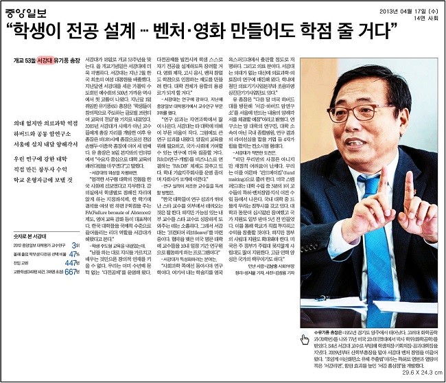 [중앙일보] "학생이 전공 설계... 벤처, 영화 만들어도 학점 줄 거다"