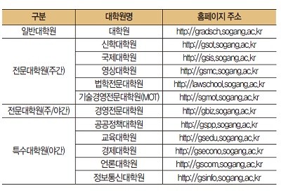 모교 일반·전문·특수대학원이 2013학년도 신입생 모집에 나섰다. 주간에 수업하는 전문대학원인 신학대학원의 경우 신학, 철학, 사회복지학, 가톨릭사회복지학 전공 과목을 모집하며 10월 29일부터 11월 8일까지 원서를 접수 받는다. 모집 전공에 따라 석사, 박사, 석·박사 통합과정 등을 구분해서 운영한다. 야간에 수업하는 특수대학원인 공공정책대학원은 국제관계·통상외교, 북한·통일정책, 중국학과, 사회복지, 행정·법무·환경, 사회문화정책, 정치경영학과 등을 모집 전공으로 정하고 석사 과정을 운영한다.
