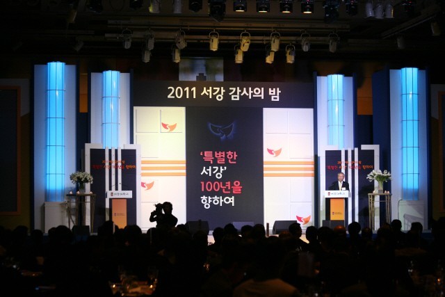 모교가 ‘2011 서강 감사의 밤-특별한 서강 100년을 향하여’ 행사를 10월 27일 오후 6시 삼성동 그랜드인터컨티넨탈 2층 그랜드볼룸에서 개최했습니다. 학교발전기금 기탁 동문과 서강가족 450여 명을 초청해 감사 인사를 전하고자 마련한 자리였습니다.