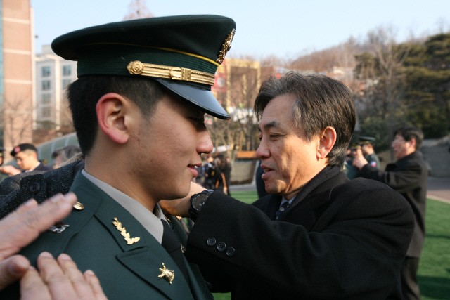 정훈(70 신방) 총동문회 수석부회장을 비롯해 ROTC동문회에서는 송창환(72 독문, 14기), 김대섭(73 경영, 15기), 노영식(74 수학, 16기), 홍석범(75 사학, 17기), 오영세(79 화공, 21기), 김서현(80 경영, 22기), 김성문(82 경제, 24기) 동문들이 이른 아침부터 학교를 방문, 후배 예비 장교들을 축하해주기 위해 함께 자리했습니다.