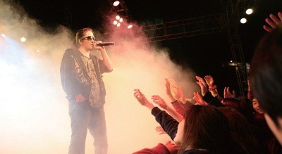 서강문화제 축하공연 무대에서 초대가수 박완규가 열창하고 있다.