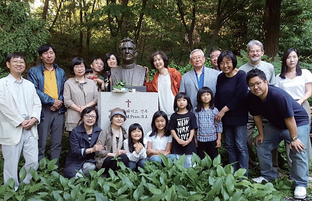 프라이스 신부를 따르던 화요가족(화가회) 동문들이 6월 4일 저녁 학교 안 동상에 모여 고인의 생일을 축하했습니다. 올해 생신축하 모임에는 특별한 손님들이 참석했습니다. 정훈(70 신방) 회장과 장의균(70 신방) 동문의 3대에 걸친 가족들이 참석했고, 신현선(87 컴퓨터) 동문이 미국 시애틀에서 한달음에 달려왔습니다. 박문수 이사장 신부, 류장선 전임 총장신부, 김미자(64 국문) 동문도 초대에 응해서 20여 명의 서강가족이 자리를 함께 했습니다.