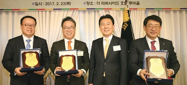 신년 행사 하이라이트인 자랑스러운 서강경영인상은 임채운(75 무역) 중소기업진흥공단 이사장, 서명석(80) 유안타증권 사장, 정은영(83) 한국HSBC은행 대표 등 3명에게 돌아갔습니다. 경영대 동문회는 장종현(69 무역), 이상웅(77) 전임 회장에게 감사패를 전달했고, 동문회 발전을 위해 애써온 송상근(84), 김기수(85), 김기덕(86), 오종윤(87) 동문에게 공로패를 건넸습니다. 행사에 불참한 남진우(65) 전임 회장과 박민재(81) 동문에게는 각각 감사패와 공로패를 따로 전달할 계획입니다.