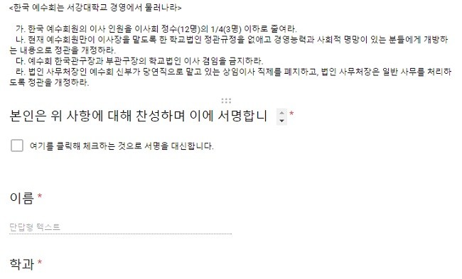 개혁조치뿐이라고 판단합니다. 22일 오후 시작하는 동문 대상 서명운동에 적극 동참해주시기 바랍니다.