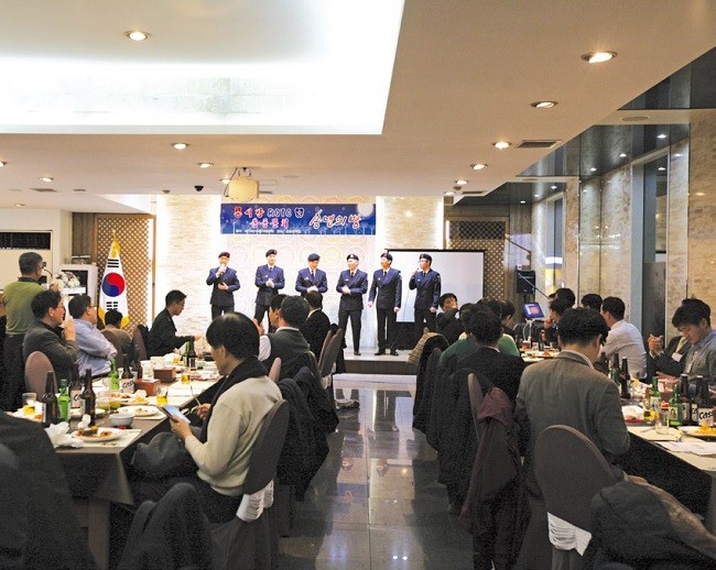 서강ROTC동문회(회장 77 화학 장준) 정기총회 및 송년회가 2015년 12월 10일 거구장에서 열렸습니다. 고택규(77 영문) 사무총장이 사회를 맡은 가운데 국기에 대한 경례 및 애국가 제창으로 행사는 막이 올랐습니다. 이후 호국선열에 대한 묵념과 ROTC 강령 낭독은 ROTC동문회의 진중함과 기개가 드러난 시간이었습니다. 장준 ROTC동문회장은 인사말을 통해 “후배 기수들이 많이 참여해서 앞으로 선배들과 더욱 끈끈하게 연결되는 동문회가 되길 바란다”라고 말했습니다. 배한욱(70 물리) 동문은 “여러 사람이 지나다녔기에 산길이 형성된 것처럼, ROTC동문회도 자주 모여서 그 가치를 이어가야 한다”라고 축사했습니다.