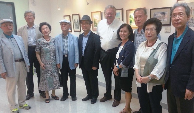 61학번 동기 모임 강이회가 이매자(61 영문) 동문의 남편 마이클 디바인이 마련한 수채화 전시회 ‘Images Near and Far’를 계기로 모였습니다. 미국 트루먼대통령도서관 관장을 역임한 마이클 디바인은 은퇴 이후 화가로서 제2의 삶을 살고 있습니다. 강이회원인 고승범, 박상옥, 손정식, 윤부근, 이청자, 정석교, 홍범표, 홍익찬 동문 등은 9월 5일 전시회 오프닝 리셉션에 맞춰 경기도 판교에 자리한 원월드어학원을 방문했습니다. 어학원은 이매자 동문의 막내 아들과 며느리가 운영하는 곳으로, 그림 전시는 학원 내부에서 이뤄졌습니다.