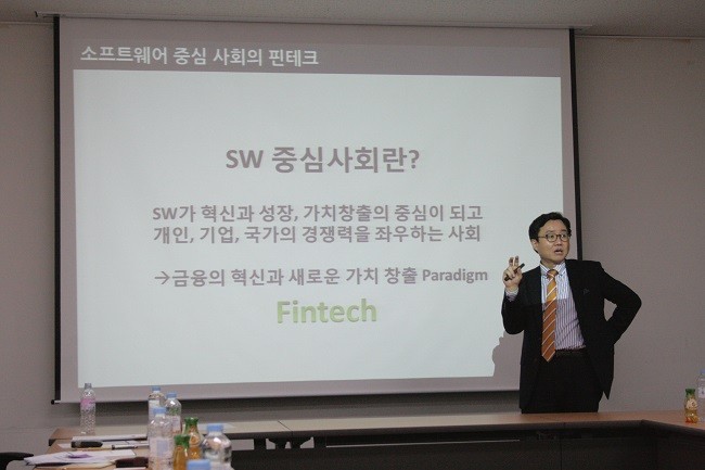 ‘핀 테크’란 금융을 뜻하는 파이낸셜(financial)과 기술(technique)의 합성어로 정보기술(IT)을 기반으로 한 새로운 금융 기술을 아우르는 명칭입니다. 서미래 대표이자 모교 글로벌핀테크연구소 소장인 박수용(82 컴퓨터) 대외교류처장은 “소프트웨어 중심사회에서 금융 혁신과 새로운 가치 창출을 위한 패러다임이 핀 테크다”라며 “사람과 사람 사이를 잇는 게 SNS(social network service)라면 파이낸스 이슈들이 서로 이어지는 게 MNS(monetary network service)로서 핀 테크가 가져올 환경 변화다”라고 설명했습니다.