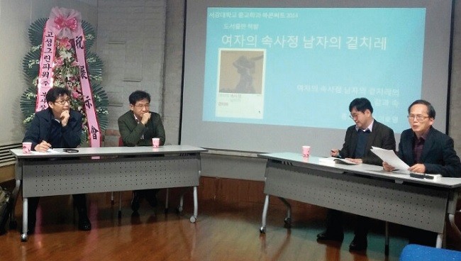 11월 27일 오후 7시 모교 로욜라도서관 유드림홀에서 종교학과 동문 30여 명이 모여서 이호영(83) 동문의 신간 ‘여자의 속사정, 남자의 겉치레’ 출판을 축하하는 북콘서트를 열었습니다. 이 동문은 책 내용을 소개하면서 흥미진진한 강연에 나섰고, 강진구(84) 동문과 류제동(85) 동문은 논평을 이어나갔습니다. 같은 학과 동문이 출판한 책을 소재 삼아서 종교학과 동문들은 진솔한 대화에 나섰습니다. 김세원(86) 종교학과 동문회장은 “이번에 마련한 북콘서트와 같은 취지에서, 동문들의 활동을 소재로 활용한 동문회 사업을 종종 마련하겠다”라고 말했습니다.