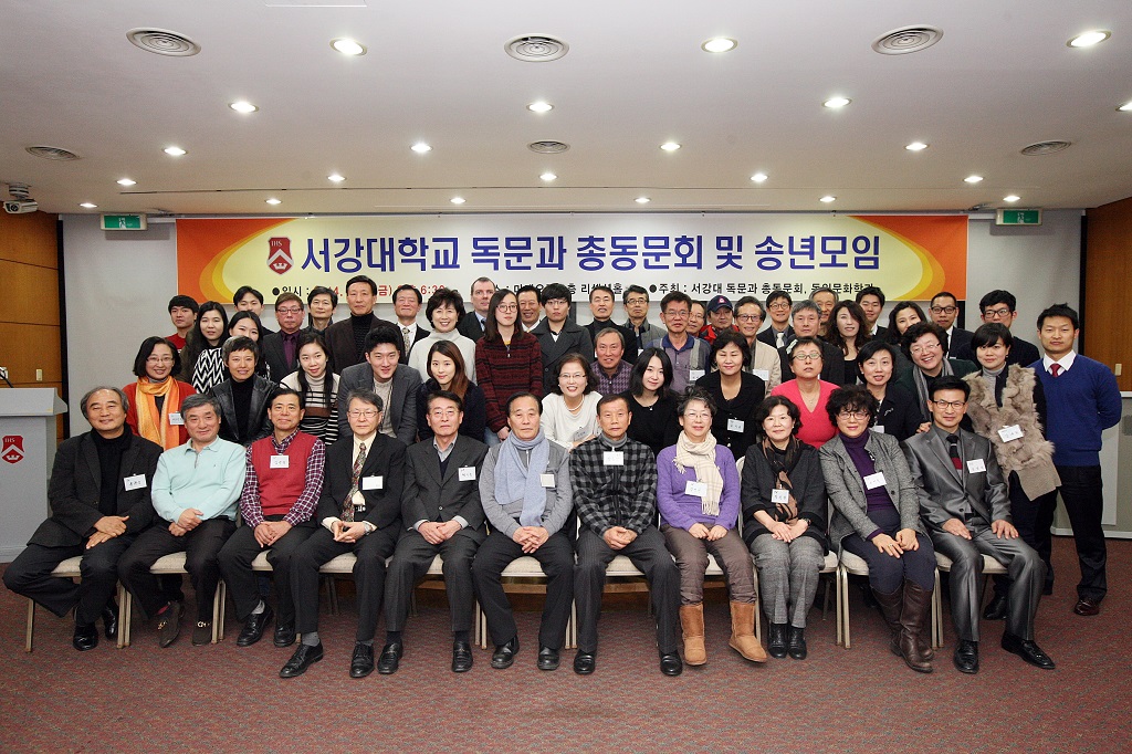 독문과 동문회(회장 73 강규원) 송년 모임이 12월 5일 오후 7시 마태오관 9층 리셉션 홀에서 열렸습니다. 독문과 동문과 교수, 재학생 등 40여 명이 참석한 이번 모임 사회는 정영걸(76) 총무가 맡았습니다. 미국 파견 근무 중인 강규원 동문회장을 대신해 연단에 오른 윤권식(70) 명예회장은 “2010년 다음 카페를 만들어 활용했는데, 요즘 많이 잊힌 것 같다”라며 “네이버 밴드를 통해 수시로 소통할 수 있는 장을 만들 예정이니 참여해 달라”라고 당부했습니다.