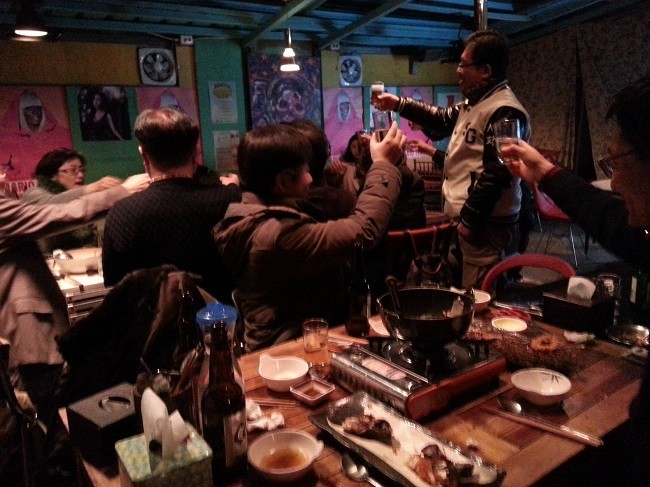 서강타임스-서강학보 동인회(회장 88 경제 조광현) 송년회가 12월 16일 오후 7시 신촌 껀수네 해물포차에서 열렸습니다. 추운 날씨에도 광주(83 사학 김미경), 청주(81 정외 이상철) 등지에서 활동하는 동인이 참석했고 바쁜 일정에도 다큐멘터리 영화 ‘다이빙벨’을 감독한 안해룡(80 사학) 동문이 찾아오는 등 성황이었습니다.