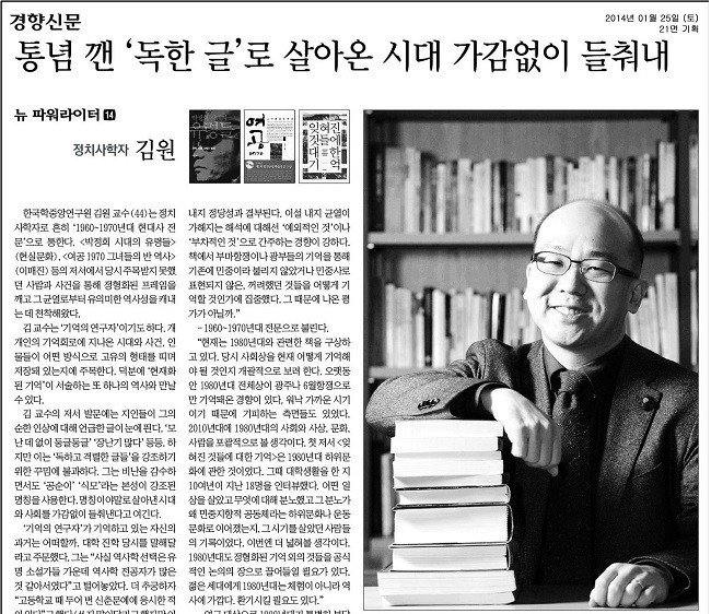 현재 한국학중앙연구원 교수로 재직 중인 김원(89 사학) 동문의 인터뷰가 경향신문에 실렸습니다. 김 동문은 정치사학자로 우리나라 1960~70년대를 다루는 현대사의 전문가로 손꼽힙니다.