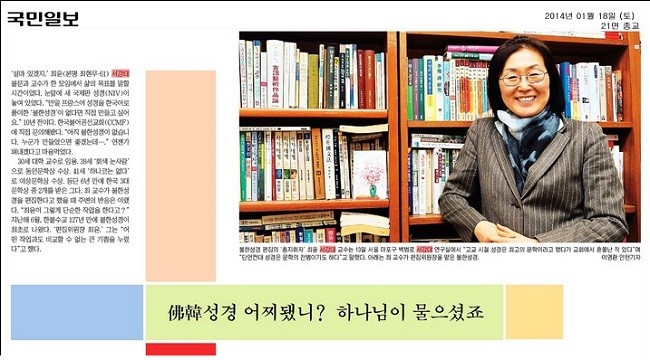 [국민일보] 불한성경 최초로 펴낸 최윤 편집위원장