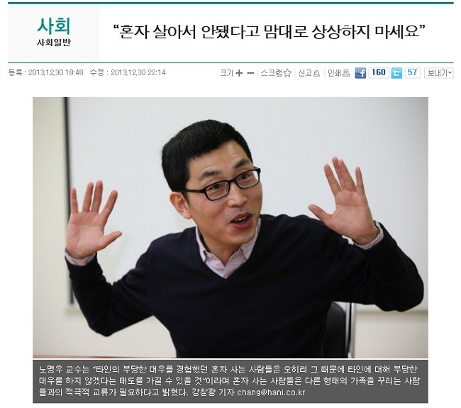 [한겨레] "혼자 살아서 안됐다고 맘대로 상상하지 마세요"