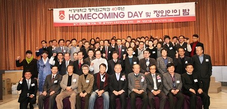 정치외교학과 40주년 홈커밍 데이 및 정외인의 밤 행사가 11월 30일 열렸다. 정외과 동문회와 정치외교학과가 공동으로 꾸린 40주년 추진위원회 주최로 마련된 이날 1부 행사는 오후 2시부터 다산관 101호에서 열린 홈커밍 데이 프로그램이었다. 정외과 역사를 돌아보고 학창 시절 추억담을 나눠보는 시간이었다.
