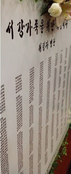 홍범표 동문은 먼저 세상을 떠난 모든 61학번 동기들의 평안을 기원하는 메시지를 담았다. 사랑하는 사람을 잃은 서강가족들의 마음을 위로하는 듯 제대 주변에는 총동문회와 61학번 동문 모임 ‘강이회’가 준비한 조화가 은은한 향기를 내뿜었다.