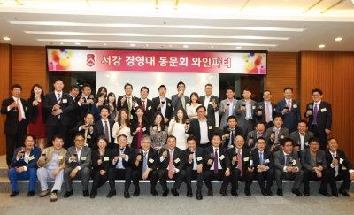 경영대동문회(회장 77 경영 이상웅)가 10월 10일 저녁 7시 역삼동 세방그룹 지하 강당에서 와인파티를 개최했다. 세방그룹회장인 이상웅 경영대동문회장이 지난해에 이어 사옥에서 자비를 들여 마련한 행사에는 동문과 모교 관계자 등 100여 명이 참석했다. 임원현(84 경영) 동문이 사회를 맡았으며 총동문회 부회장이기도 한 이상웅 회장은 “동문 네트워크 강화에 도움되길 바라는 마음에서 준비한 자리다”라고 인사했다. 행사장에는 총동문회 서강와인 ‘세븐힐 인이고’가 준비된 가운데 레드와인과 화이트와인이 넉넉했고, 치즈를 비롯한 안주거리도 가득했다.