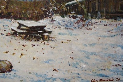흰 눈이 쌓인 한 겨울에도 따스함이 느껴지는 정경을 그리고 싶었다.