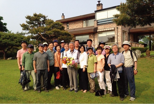 3시간을 걸어 도착한 곳은 양평 인근에 위치한 김규 모교 명예교수의 별장이었습니다. 김 교수는 동문들을 반갑게 맞이하며 한 사람 한 사람에게 안부를 물었습니다. 미리 준비해둔 음식을 권하는가 하면, 특유의 달변으로 우리나라 방송 역사에 대한 즉석강의를 펼쳤습니다. 이에 동문들은 미리 준비한 선물을 김 교수에게 증정하며 스승의 은혜에 대한 고마움을 표했습니다.
