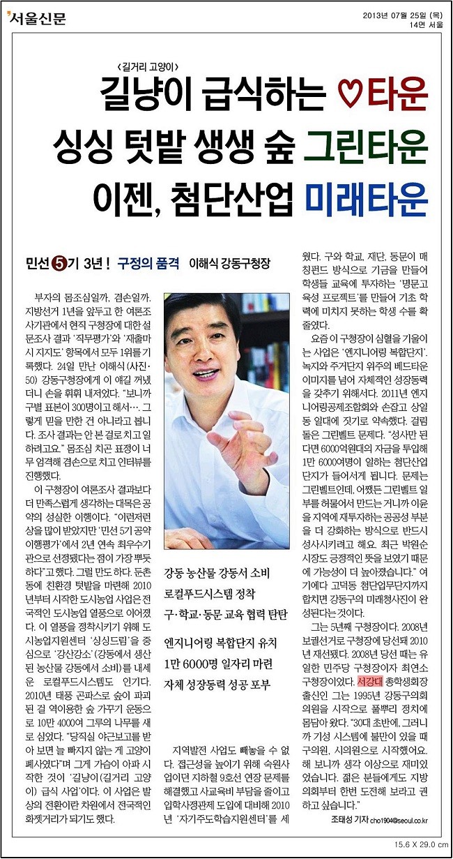 [서울신문] 민선 5기 3년! 구정의 품격 - 이해식 강동구청장