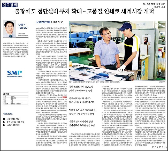 [한국경제] 삼성문화인쇄 조병욱 사장, 불황에도 첨단설비 투자 확대... 고품질 인쇄로 세계시장 개척