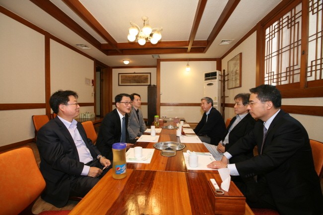 28대 총동문회 집행부의 마지막 회의인 5월 회장단 회의가 15일 낮 12시 거구장에서 열렸습니다 정훈(70 신방) 총동문회장 직무대행, 홍성완(72 영문), 송영만(74 정외), 이건영(74 경제) 부회장 등이 참석한 가운데 김덕용(76 전자) 신임 총동문회장과 첫 인사를 나눴습니다. 5월 31일 열리는 대의원총회를 앞두고 마련한 자리에서 김덕용 동문은 회장직에 나서게 된 계기와 향후 어떠한 자세로 총동문회를 이끌 것인가에 대해 설명했습니다.