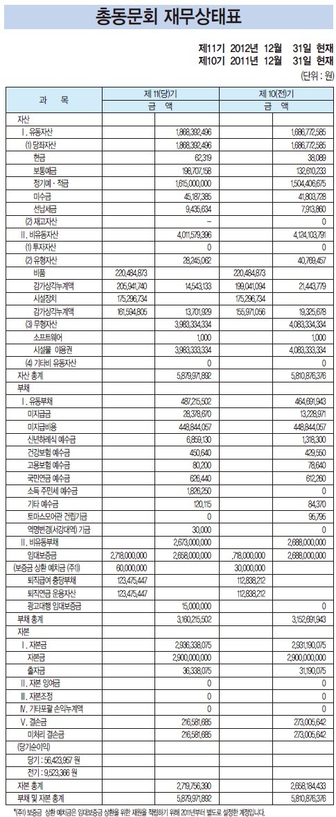 총동문회 재무상태표