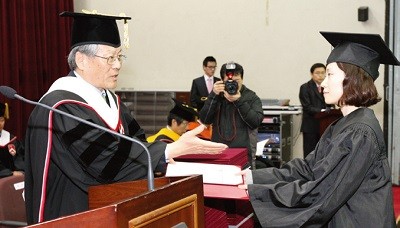 이어서 문주원(06 국문) 동문을 비롯해 6개 학부별로 1명씩 총 6명의 학부 최우수졸업생에게 표창하고 학위수여를 진행했다. 학사와 석사 과정 졸업생은 대표 학생이 학위증을 받았고, 박사과정 졸업생은 일일이 학위증을 받았다.