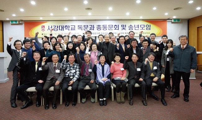 독문과 동문회(회장 70 윤권식)가 2012년 12월 14일 오후 6시 30분 마태오관 9층 리셉션 홀에서 송년모임을 열었습니다. 교수진과 재학생을 포함해 30여 명이 참석한 자리에서 윤권식(70) 독문과 동문회장은 행사 사회를 맡았습니다.