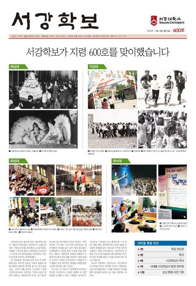 서강학보 600호,그대 흘린땀 세상을 이기다