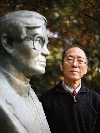 <첫 번째 사진 : 학창시절 은사였던 故김태관 신부 흉상 옆에서 포즈를 취한 안우규(60 영문) 동문>