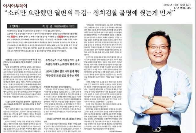 최 동문은 <아시아투데이> 인터뷰에서 변호사의