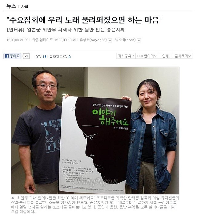 [오마이뉴스] "수요집회에 우리 노래 울려펴졌으면 하는