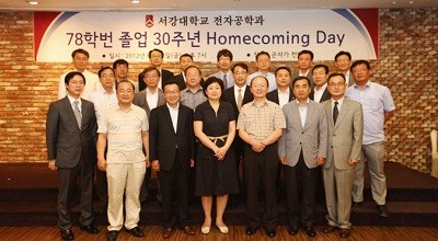 78학번 전자공학과 동문들이 6월 22일 오후 7시 곤자가컨벤션에서 졸업 30주년을 자축하는 홈커밍데이를 열었다. 이날 모임에는 30여명의 78학번 전자공학과 동문들이 모여 반가운 인사를 나눴다. 오대일 동문이 사회를 맡은 공식행사는 졸업앨범에서 발췌한 재학 시절사진들을 감상하는 것으로 시작했다. 78학번 전자공학과 동기회 회장을 맡은 정옥현 모교 전자공학과 교수는 “그동안 LG전자에서 근무하다가 모교의 배려로 올해 3월부터 교수직을맡게 됐다”라며 “다시 돌아온 만큼 모교와 78학번 전자공학과 동문들의 발전을 위해 최선을 다하겠다”라고 각오를 밝혔다.