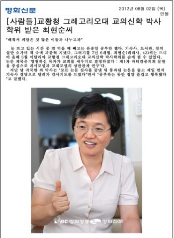 [평화방송] 교황청 그로고리오대 교의신학 박사학위 받은 최현순씨