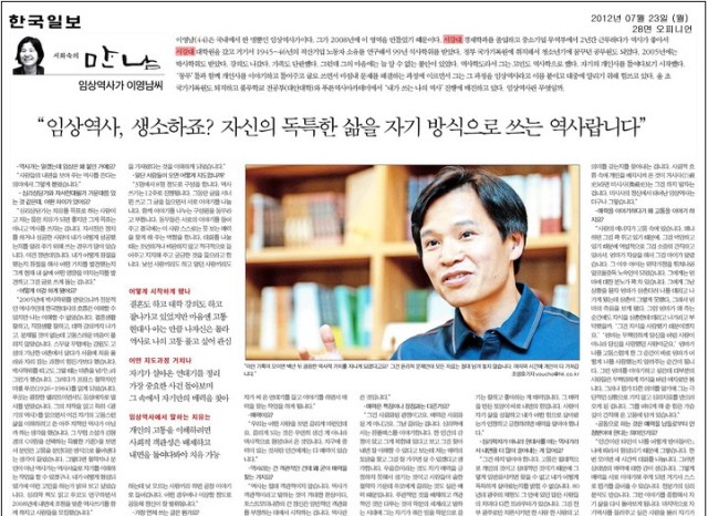 [한국일보] 임상역사가 이영남씨