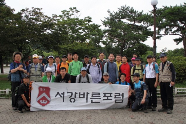 서강바른포럼 산악회가 7월 산행으로 14일 서울대공원 안 삼림욕장 둘레길을 걸었습니다. 2대 산악회장을 맡은 이태극(81 경영) 동문과 산악회총무 한상국(87 경영) 동문을 비롯해 성기철(70 전자) 포럼 고문, 최성수(72 수학) 포럼 수석부회장 등 35명이 참석했습니다.