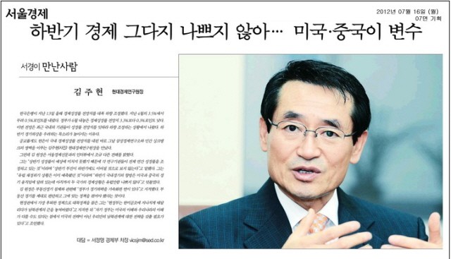 [서울경제] 서경이 만난 사람 - 김주현 현대경제연구원장