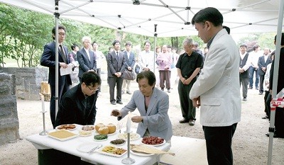 미사 이후 도서관 옆 로욜라동산에 조성된 추모비 앞에서 추모 제사를 올렸다. <사진> 정욱(91 경영) 동문이 사회를, 이훈(84 사학) 민주동우회 회장이 제주(祭主)를 맡았다. 묵념과 고인 약력소개 이후 참석자들은 학번별로 분향하고 절을 올렸다.