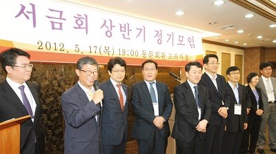금융계 팀장급 이상 동문모임 서금회(西金會)가 5월 17일 저녁 동문회관에서 상반기 정기모임을 개최했다. 박지우(75 정외) 서금회 회장은 인사말을 통해 모교 발전과 동문들의 승승장구를 기원했고, 특히 19대 총선에서 4선에 성공한 서병수(71 경제) 동문에게 당선 축하인사를 건넸다.