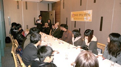 정재경장학회(회장 78 경제 박석준)가 2월24일 오후 6시 동문회관 11층 스카이라운지에서 주기도(10 사학) 재학생을 비롯한 대학생(5명)과 고교생(1명) 동문자녀 6명에게 2012학년도 1학기 장학금으로 1550만원을 전달했다.