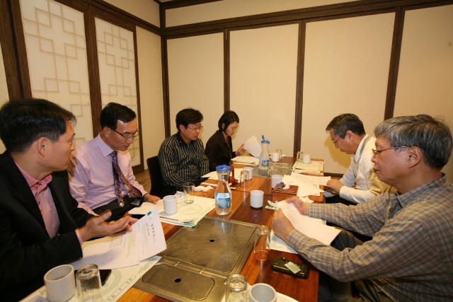 <2012년을 맞아 처음으로 열린 2월 회장단 월례회의. 올해부터는 회장, 부회장 외에 감사 2명도 월례회의에 참석해 현안을 논의했다. 1월 월례회의는 1월 초에 열린 신년하례식 때 회장단이 한 테이블에 모여 의견을 나눌 수 있기에 월례회의로 갈음했다.>