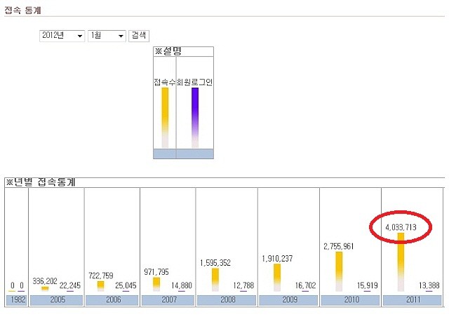 2006년 홈페이지가 개편된 뒤 자리를 잡을 때까지인 초창기 3년간의 히트수도 처음부터 증가추세였습니다. △2005년 33만6202 △2006년 72만2759 △2007년 97만1795이었습니다. 이후 100만을 넘어섰고 상승세를 유지하며 비약적으로 증가하는 바탕이자 버팀목으로 작용했습니다.