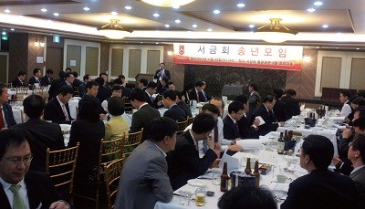 서강금융인 동문모임인 서금회(西金會) 2011 송년모임이 11월 23일 동문회관 3층에서 열렸다. 박지우(75 정외) 서금회 회장은 인사말에서 “2007년 창립한 서금회가 지금까지 이어지는 것을 창립멤버들과 함께 보니 감개무량하다”라며 “서강 출신 금융인들이 단합해 서로 돕는 모임을 만든 것에 자부심을 느끼면서, 서금회가 면면히 지속되도록 다 함께 더욱 노력하자”라고 덕담했다.