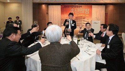 시상이 끝난 이후 뷔페로 준비한 저녁 만찬이 펼쳐졌다. 식사를 앞두고 고성학(78 정외) 한국정보인증 대표가 협찬한 총동문회 기념와인으로 건배 제의가 연이었다. 건배사는 최태환 서언회장, 유기풍 모교 산학부총장, 김진원(68 신방) 前서언회장(제2대) 등이 차례로 남겼다. 식사를 곁들이는 동안 이장규(69 경제) 동문은 ‘대통령의 경제학’을 주제로 강연했다. 행사의 마지막은 서언회 행사 협찬 동문 소개와 신입 서언회원 소개, 언론사별 단체 인사가 장식했다.