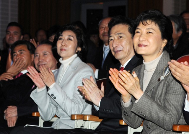 서강 출신 정치인 박근혜(70 전자), 김호연(74 무역) 동문이 출판기념회에서 서로 힘을 보태며 격려하는 ‘서강가족’의 모습을 보였습니다.