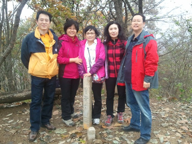 <콘도 뒷산 산책 나왔다가 등산하기로 의기투합해, 산을 오른 지 10여분이 지났을 때의 '멀쩡한' 모습. 왼쪽부터 이창섭(84 국문) 마유미(84 사회) 부부와 송경자(84 사학) 박은아(84 국문) 동문>