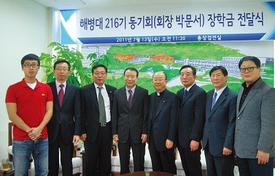 해병대 216기 동기회가 모교에 1억 원을 장학기금으로 약정했다. 7월 13일 오전 11시 30분 총장실에서 진행된 장학기금 전달식에서 박문서 해병대 216기 동기회장은 앞으로 5년간 총 1억 원을 기탁하기로 약정하고, 그 시작으로 1000만원을 모교에 전달했다.