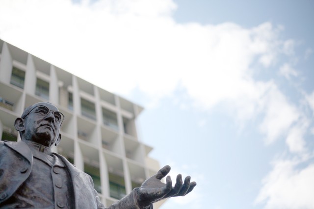 <서강 설립자 가운데 한 분이자 초대 이사장을 역임한 게페르트 신부님 흉상>