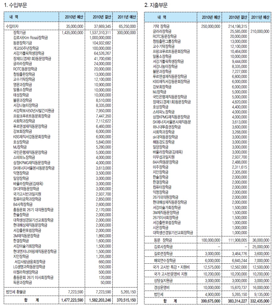 동문장학회 2010년 결산 및 2011년 예산